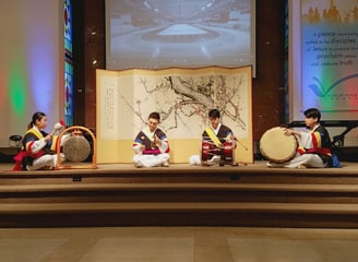 Enjoy the vibrant rhythms of traditional Korean Nongak music.